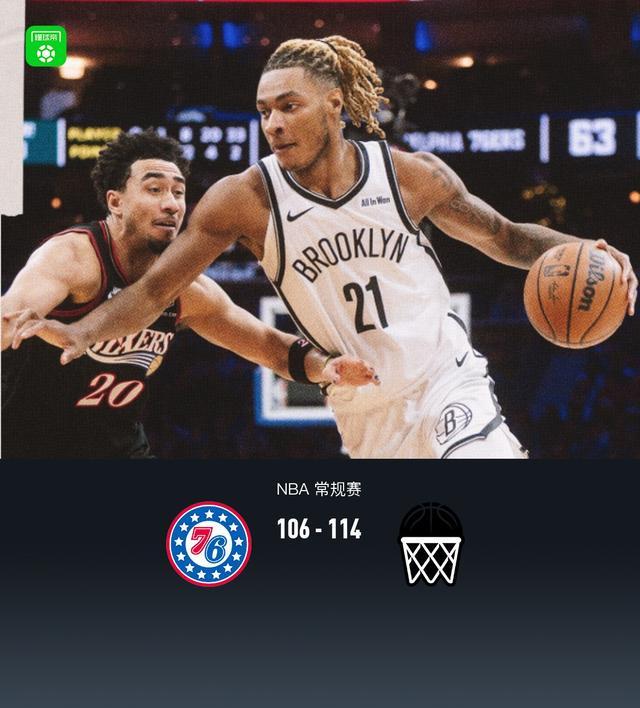 北京时间12月24日,NBA常规赛,费城76人队迎战布鲁克林篮网队。半场76人57-63领先篮网,最终76人106-114领先篮网。费城76人队恩比德27分6篮板4助攻,保罗乔治19分4篮板2助攻;布鲁克林篮网队小波特得到28分、5个篮板和1次助攻,埃戈尔·戴明得到18分、2个篮板和5次助攻。首节,恩比德为76人拿下10分,小波特得分。篮网队14分。首节结束76人队以27-27获胜。第二节,恩比德为76人队拿下9分,波特为篮网队拿下11分。第三节结束,76人队以57-63落后篮网队。德拉蒙德为76人队拿下8分,叶戈尔·戴明为篮网队拿下7分。第三节结束,76人队以77-89落后篮网队。 76人队第四节得分恩比德。得了6分。叶戈尔·戴明得分篮网队拿下6分。最终,76人队以106-114不敌篮网队。费城 76 人队全场比赛数据。恩比德得到27分6篮板4助攻2盖帽。保罗乔治得到19分和4个篮板。 2助攻4抢断2盖帽,马克西13分3篮板2助攻4抢断;布鲁克林篮网队小波特28分5篮板1助攻2抢断,埃戈尔·戴明18分2篮板5助攻,克拉克斯顿16分10篮板2助攻1抢断。费城76人首发阵容:恩比德、保罗乔治、马克西、麦凯恩、贾巴里沃克;布鲁克林篮网队:小波特、叶戈尔·戴明、克拉克斯顿、克隆尼、曼恩。